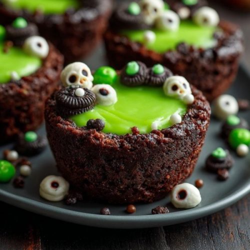 These Cauldron Cookie Cups are chewy chocolate cookie cups filled with vibrant green buttercream “potion” and topped with candy eyeballs, sprinkles, and pretzel sticks. They’re spooky, fun, and perfect for Halloween parties or a cozy family night in.