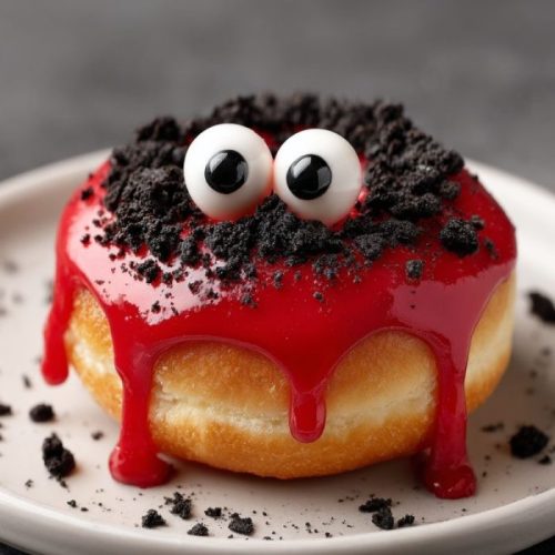 These Vampire Donuts are a spooky, no-fuss Halloween treat made with plain donuts dressed up in red icing, candy eyes, and black sprinkles for a playful, bloodthirsty look. Perfect for parties, after-school snacks, or family decorating nights.