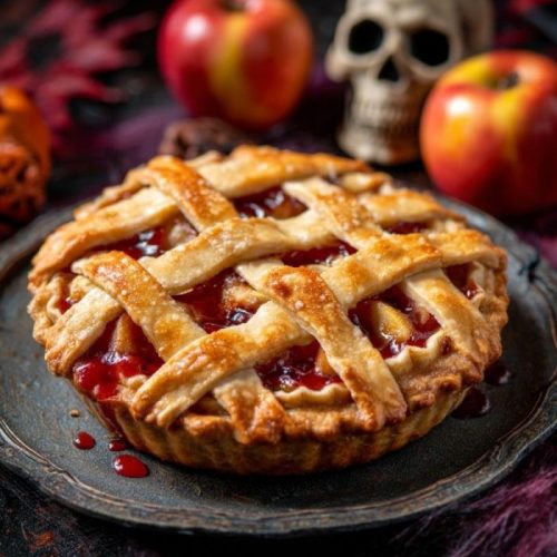 This Poison Apple Pie blends tender cinnamon-spiced apples under a golden lattice crust dusted with black sugar for a dark, glossy Halloween effect. It’s festive, flavorful, and surprisingly easy to make with simple pantry ingredients.