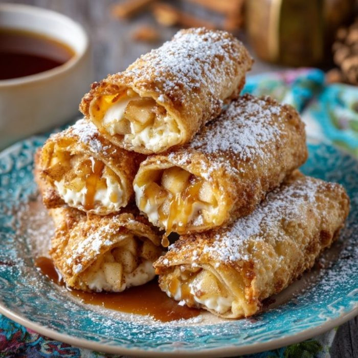Spiced Apple Churro Rolls: Toss the fried egg rolls in cinnamon sugar instead of powdered sugar for a churro-inspired finish.