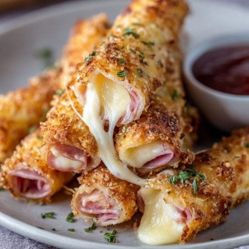Crispy, golden-baked mozzarella sticks wrapped in tender honey ham and egg roll wrappers. Perfectly gooey, cheesy, and family-approved, these bites are ideal for snacks, game days, or casual gatherings.
