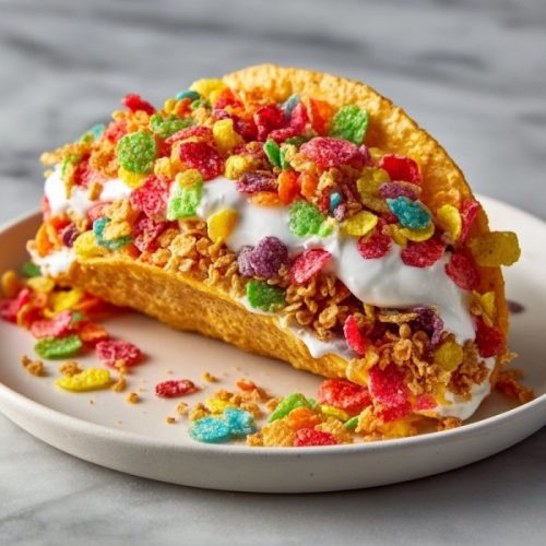 I wanted something fun that would make the kids’ eyes light up but wouldn’t stress me out after a full day at the office. That night, I rummaged through the pantry and spotted an almost-forgotten box of Fruity Pebbles. Suddenly, the idea of turning cereal into dessert tacos hit me.