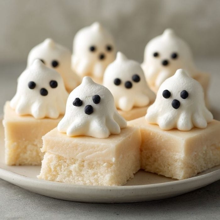 A creamy, melt-in-your-mouth vanilla fudge topped with playful marshmallow ghosts. Easy to make, fun to decorate, and perfect for adding a little Halloween magic to your dessert table.