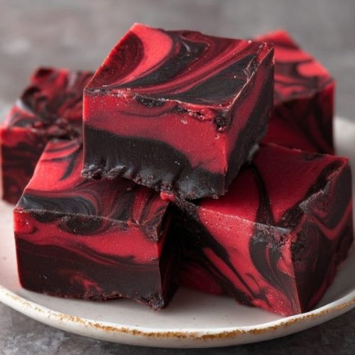 A creamy white chocolate fudge infused with strawberry gelatin and swirled with dark chocolate for a dramatic “vampire’s kiss” effect. This festive Halloween treat is sweet, smooth, and eye-catching—perfect for parties or family movie nights.