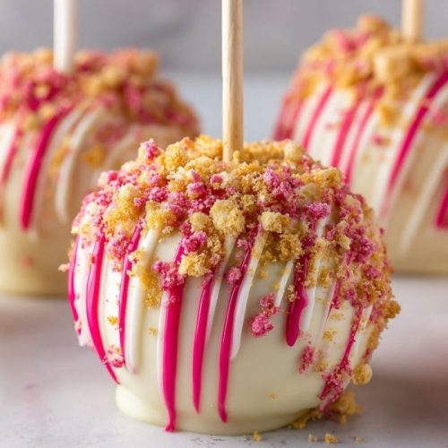 These Strawberry Shortcake Candy Apples take the classic fair treat and turn it into a creamy, fruity indulgence. Fresh apples are dipped in white chocolate, rolled in crushed strawberries and shortcake crumbs, and chilled to perfection—perfect for parties, holidays, or a sweet family dessert night.