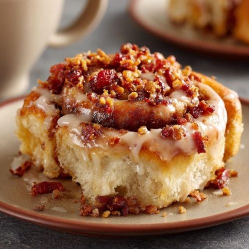 That morning, however, something incredible happened. The moment I walked in, a rich aroma of maple, butter, and smoky bacon swirled through the air, and every bit of skepticism melted away. Her rolls were glossy with glaze, crisped at the edges, and oozing with cinnamon sweetness under a blanket of salty bacon. I couldn’t resist taking seconds—and then I begged for the recipe.