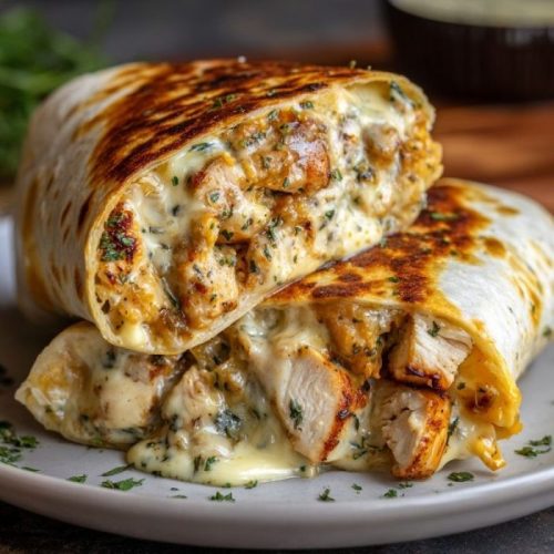 Cheesy Garlic Chicken Wraps are warm, crispy tortillas filled with tender chicken, melted cheeses, and creamy garlic sauce. Quick to make, full of flavor, and perfect for lunch, dinner, or even a late-night craving.