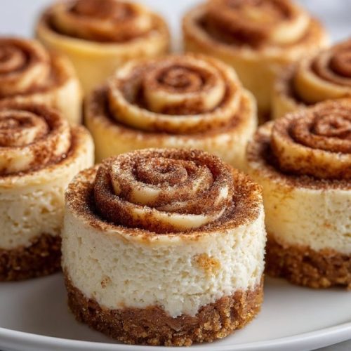 Mini Cinnamon Roll Cheesecakes blend the creamy richness of classic cheesecake with the sweet, spiced swirl of a cinnamon roll. Each bite delivers cozy, bakery-style flavor in a handheld dessert perfect for sharing or keeping all to yourself.