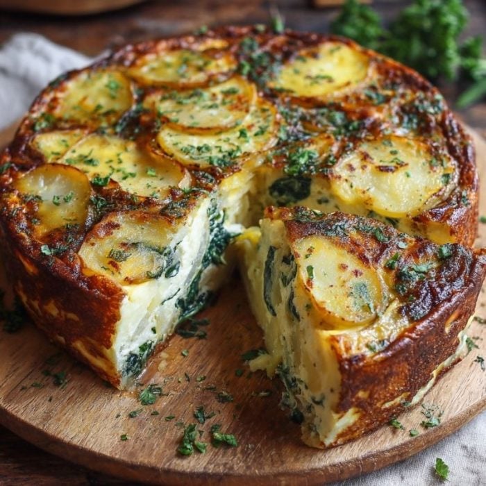 This crustless cheesy potato and spinach quiche is an easy, hearty dish loaded with shredded potatoes, fresh spinach, cheese, and turkey bacon—perfect for a quick breakfast, brunch, or even a light dinner.