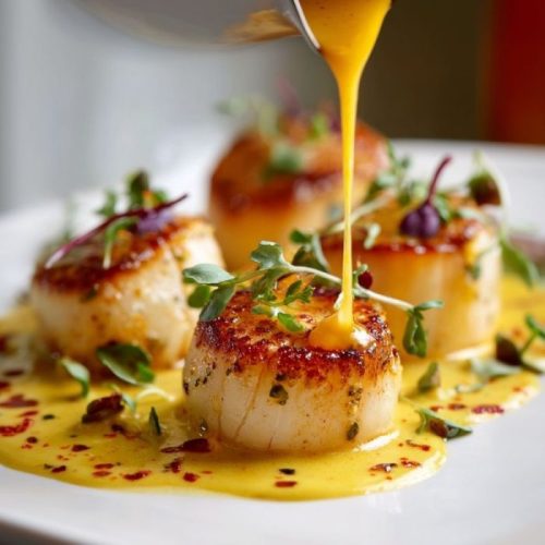 Tender scallops seared and baked in a velvety saffron cream sauce, finished with garlic, parsley, and lemon for a luxurious yet surprisingly simple dish.