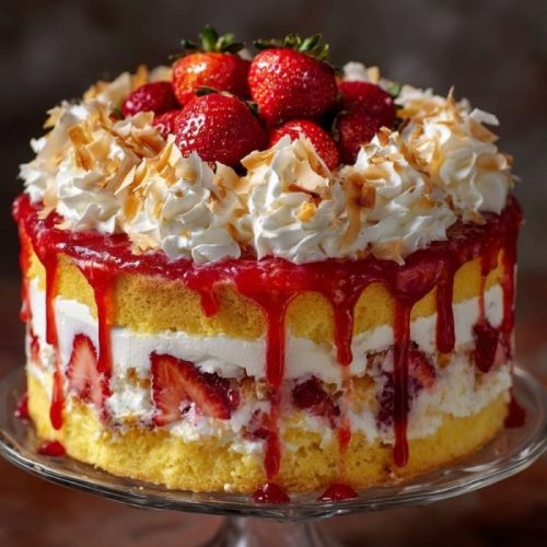 Making this Southern Strawberry-Coconut Punch Bowl Cake always reminds me how food connects people. It’s a conversation starter, a comfort giver, and the kind of dessert that earns you hugs from friends you just met. I love how simple it is—no fancy tools, no stress, just a few layers of sweetness that turn into something special. When I pull it from the fridge, the strawberries glisten like little jewels against the creamy pudding, and it never fails to draw smiles.