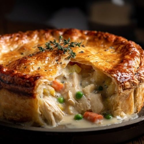 A creamy, savory chicken pot pie wrapped in a buttery, golden crust. This family-favorite recipe combines tender chicken, hearty vegetables, and a rich homemade sauce for the ultimate comfort meal.