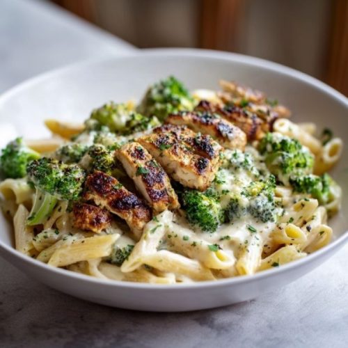 A creamy, one-pan pasta loaded with tender chicken, crisp broccoli, and a homemade Alfredo sauce that’s rich yet light enough for a weeknight meal. Perfect for busy families craving something hearty and wholesome.