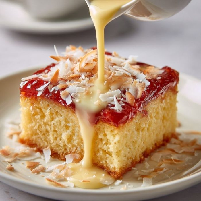 Strawberry Topped Version: Spread strawberry jam over the cooled bars before chilling.