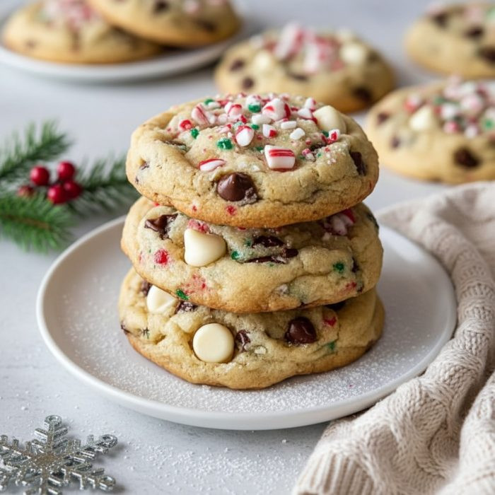 Winter Wonderland Chocolate Chip Christmas Cookies are soft and chewy, studded with semisweet and white chocolate chips plus crunchy peppermint pieces for a festive snow-kissed sparkle. Perfect for holiday gatherings, Christmas cookie boxes, or cozy evenings by the fireplace.