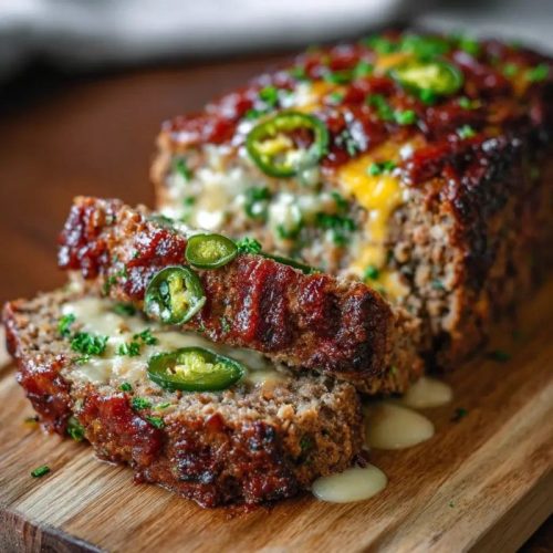 Cutting into the loaf reveals a hidden layer of creamy jalapeño filling, a little surprise that adds fun and flavor to the dinner. Adjusting the spice or cheese makes it easy to tailor for your family’s tastes, and the dish becomes something everyone looks forward to sharing. Simple, flavorful, and flexible, this meatloaf is a dish meant to create smiles and memorable meals together.