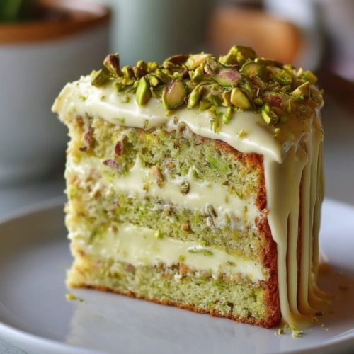 This Luscious Pistachio Cream Cake combines a tender, nutty cake with a rich, creamy pistachio frosting, perfect for celebrations or an indulgent family treat.