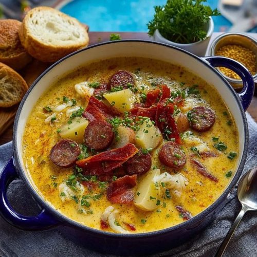 Cooking this soup has a way of easing the atmosphere in the kitchen, especially on evenings when everything feels a bit rushed. The gentle sizzle of sausage, the aroma of onions softening, and the steady simmer of potatoes create a rhythm that feels grounding. By the time the pot is bubbling steadily, the house takes on a cozy calm that draws everyone toward the table.
