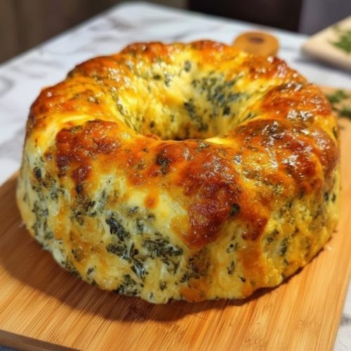 Allow the ring to rest for 5 minutes. Carefully flip onto a serving plate, removing the pan to reveal the perfectly formed cheesy ring.