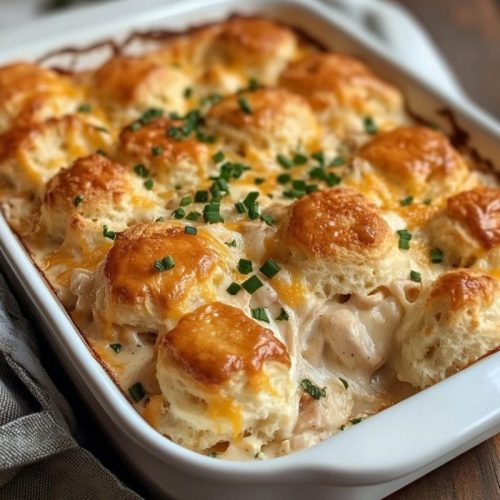 This casserole started as a simple weeknight idea and quickly filled the kitchen with rich, buttery aromas as it baked to a golden finish. The rise of the biscuits and the creamy, savory base made the whole dish feel warm and inviting.