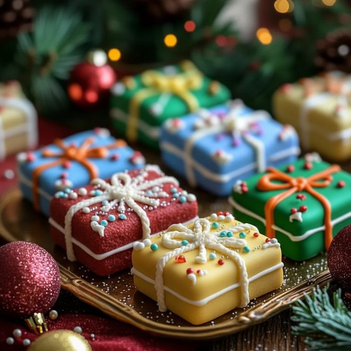 Rolling out the dough and cutting squares together felt almost like a game. Each cookie became a blank canvas, ready for colorful icing, ribbons, and sparkles. My children argued over who got to pipe the red ribbon first, and laughter bounced off the walls. Every small detail—the flour-dusted counter, the gentle hum of holiday music, the soft golden edges of freshly baked cookies—added to the magic of the moment.