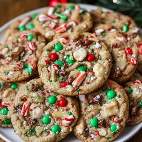 The holiday season has a way of filling kitchens with warmth, laughter, and a little bit of chaos. One chilly afternoon, the idea of cookies that held every festive favorite, from colorful candies to salty crunches, suddenly seemed irresistible. I pulled out my mixing bowls and began combining butter, sugars, and a touch of vanilla, watching the dough come together with rich aromas that instantly made the kitchen feel like a holiday wonderland.