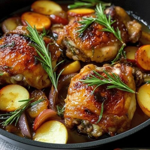 Rosemary Apple Cider Chicken fills the kitchen with warm, inviting aromas as it roasts. Juicy chicken thighs combine with sweet-tart apples and fragrant herbs, while the apple cider sauce adds a subtle depth that enhances every bite. The contrast of crisp skin, tender meat, and soft apples makes each mouthful a delight.