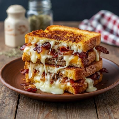 These Triple Cheese Bacon Explosion Sandwiches are a celebration of rich, layered flavors, from the smoky, crispy bacon exterior to the gooey, melty cheese inside. Each bite delivers a satisfying combination of textures, with tender beef, creamy cheeses, and the sweet savor of caramelized onions.