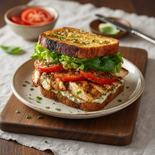 Garlic Butter Lettuce Tomato Grilled Chicken Sandwich is a fresh and flavorful meal made with grilled chicken, crisp lettuce, juicy tomatoes, and warm garlic-buttered bread, perfect for quick lunches, weeknight dinners, or light family meals.