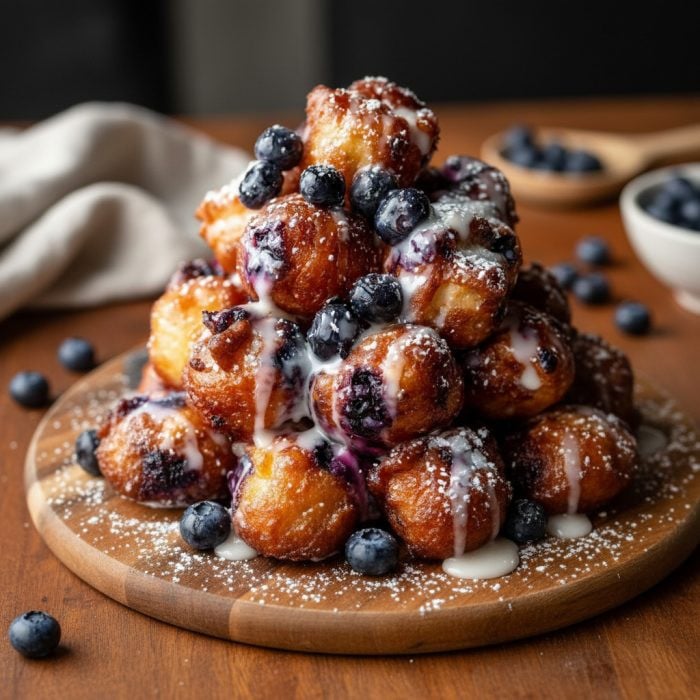 Lemon Blueberry Fritter Bites: Add 1 tablespoon lemon zest to the batter and replace milk in the glaze with lemon juice for a citrusy finish.