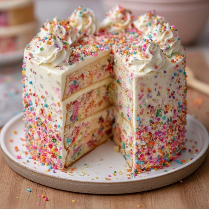 Funfetti Cake is a soft vanilla layer cake filled with colorful sprinkles and topped with a classic buttercream frosting, perfect for birthdays, casual celebrations, and everyday moments worth sweetening.