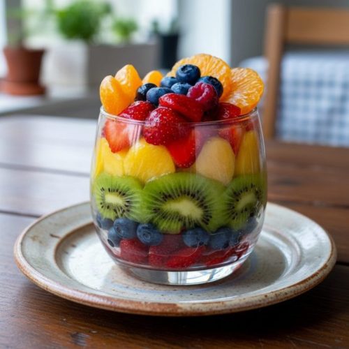 Rainbow Fruit Cup slides naturally into days that call for something light and refreshing. It adds color to the table without asking for much time or effort. Each layer feels intentional while still staying easy enough to put together on a regular afternoon.