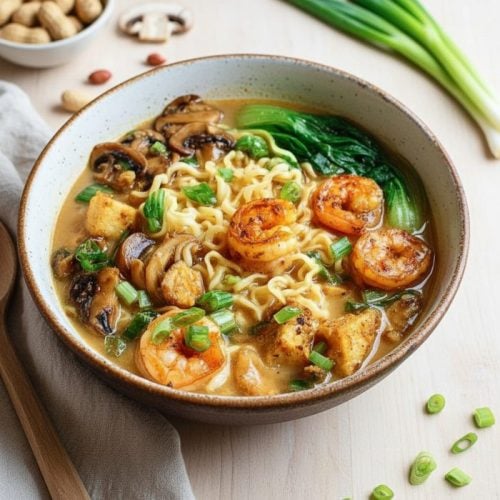 As the broth simmered and the noodles waited on the counter, the pace of the evening finally eased. Bowls came out, lime wedges were cut, and everyone gathered without being called twice. This Creamy Peanut Shrimp And Mushroom Noodle Soup ended up being more than dinner. It became the kind of meal that pulls a regular night back into balance.