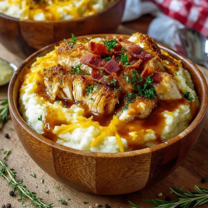 Homestyle Chicken Mashed Potato Bowls combine creamy mashed potatoes, seasoned chicken, vegetables, and warm gravy into a hearty, comforting meal served all in one bowl.