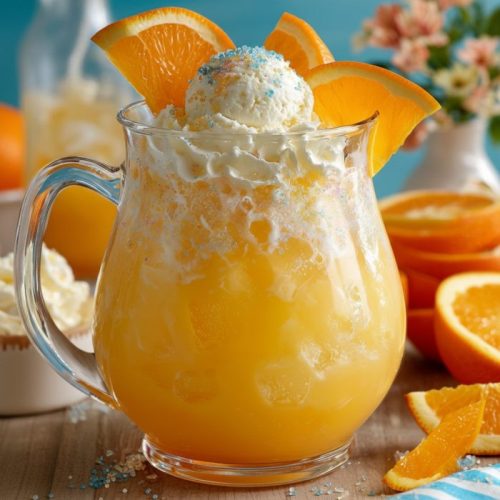 Earlier that afternoon, I’d been scrolling through messages from other parents sharing ideas for party drinks that didn’t require a blender or endless prep. One mentioned a creamsicle-style punch, and that idea stayed with me while I ran errands and picked up groceries. Orange juice was already on the list, and ice cream felt like an easy yes.