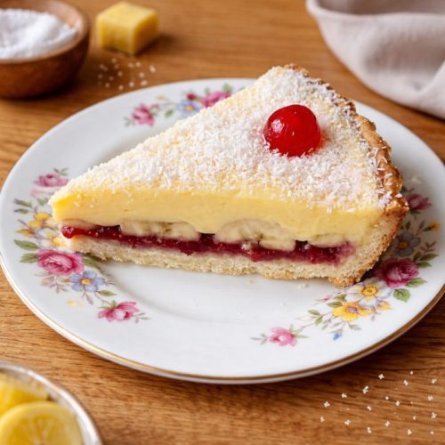 We were talking about simple puddings people used to eat after Sunday dinners, the kind that showed up on chipped plates and never needed explaining. She mentioned custard, jam, coconut, and cherries, and I could already picture it sitting in my kitchen.
