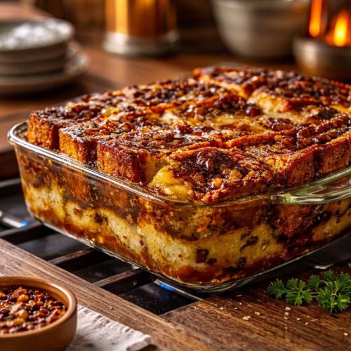 As the layers came together, the house slowed down. Bread, syrup, raisins, cheese, then back again, all stacked without much rush. By the time the dish went into the oven, everyone knew something special was happening. This wasn’t a flashy dessert, but it was one that brought people closer, waiting for it to cool just enough before slicing in.