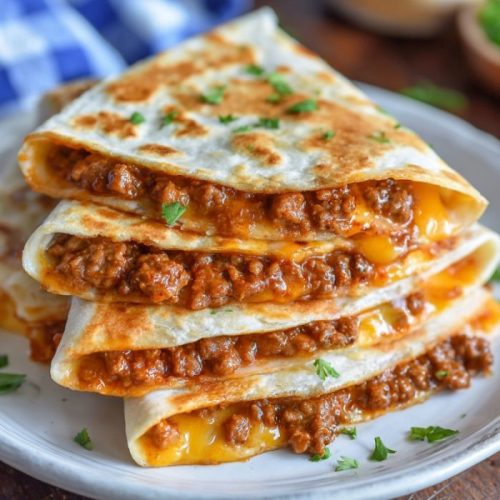 Sloppy Joe Quesadilla Flavors combine savory ground beef simmered in tangy sauce with melty muenster cheese, all tucked between crisp flour tortillas for a quick, comforting family meal.