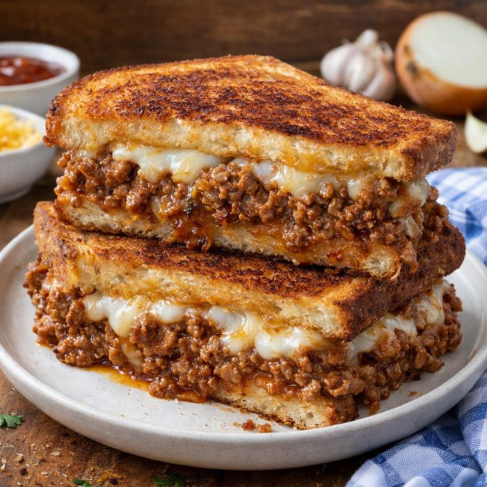 Sloppy Joe Grilled Cheese combines a rich, saucy ground beef filling with melty cheese and crispy Texas toast. It’s a hearty sandwich that blends the bold flavors of sloppy joes with the golden crunch of classic grilled cheese.