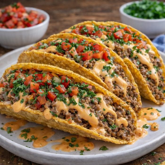 While chatting with another parent in our neighborhood group chat, someone mentioned making a creamy cheese sauce for tacos instead of the usual shredded cheese. That idea stuck with me. I browned the beef, chopped onions, and started building a cheese sauce thick enough to pour generously over crunchy shells. Soon the kitchen filled with laughter, kids grabbing plates, and even my husband drifting in early to see what smelled so good.