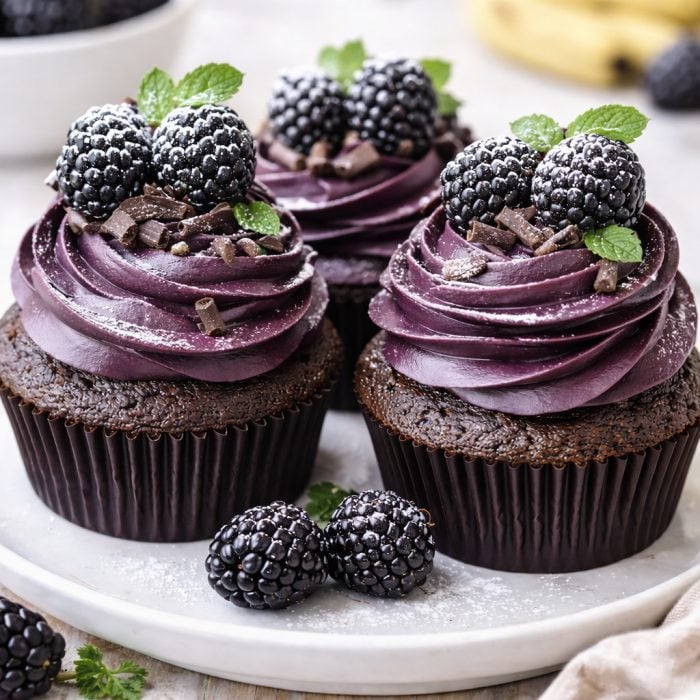 Dark Chocolate Blackberry Cupcakes combine rich cocoa cupcakes with fresh blackberry frosting for a balanced dessert that is moist, tender, and lightly fruity.