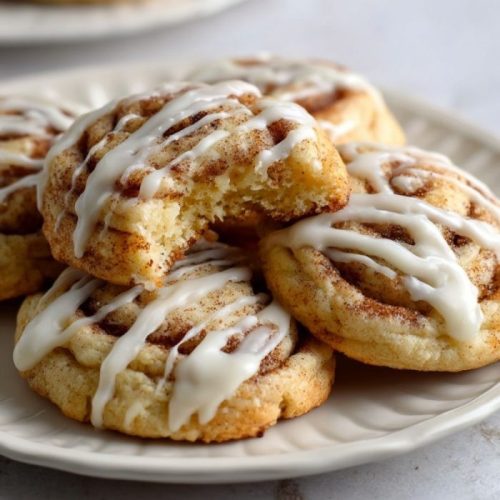Soft bakery-style cookies filled with creamy cheesecake and swirled with warm cinnamon sugar, finished with a light vanilla glaze that tastes just like a cinnamon roll.