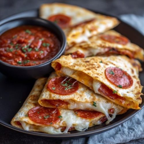 Pepperoni Pizza Quesadillas are a quick skillet meal that blends crispy tortillas, melty mozzarella, savory pepperoni, and classic pizza sauce into a fast, family friendly dinner or snack.