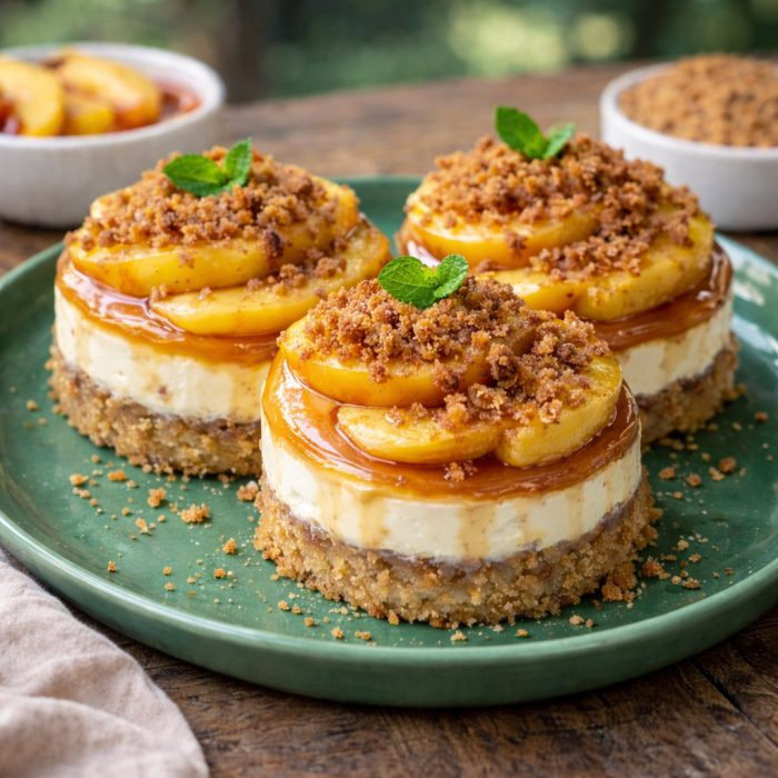 The next evening turned into a family kitchen project. Crackers were crushed, peaches were spooned carefully into tiny “treasure” centers, and my husband happily taste tested along the way. By bedtime, trays of mini cheesecakes filled the fridge, and the next day everyone asked for the recipe.