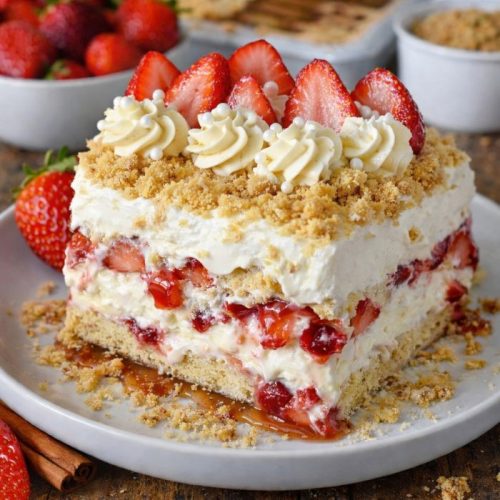 That evening turned into a full kitchen project. One child handled strawberry slicing while another helped whip cream and taste test along the way. The refrigerator filled with a chilled pan of layered sweetness, and by the next day the empty dish and recipe requests confirmed it had earned a permanent spot in our summer rotation.