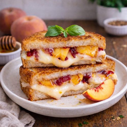This sandwich turned an ordinary afternoon into a cheerful moment around the stove. It blended the energy of busy weekdays with the relaxed pace of a slow weekend lunch. The mix of juicy peaches and melted cheese had everyone reaching for another bite before the plates were even set down.