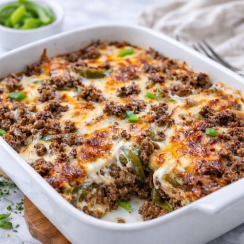 Spicy Cheesesteak Casserole: Add sliced jalapeños and ½ teaspoon chili flakes before baking for a mild heat.