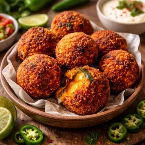 Mexican Chili Relleno Balls are crispy, golden bites filled with roasted poblano peppers, creamy potatoes, and melted cheese, perfect for dipping and sharing.
