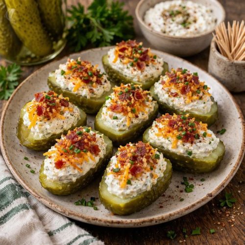 Serve chilled for the best texture. The contrast between the crisp pickle and creamy filling should be noticeable in every bite.