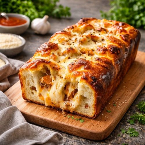Somewhere between rolling the dough and brushing off flour from my hands, Stuffed Cheesy Beef Bread became the centerpiece of the afternoon. The loaf baked into a golden crust, with melted cheese tucked inside layers of seasoned beef and bacon.